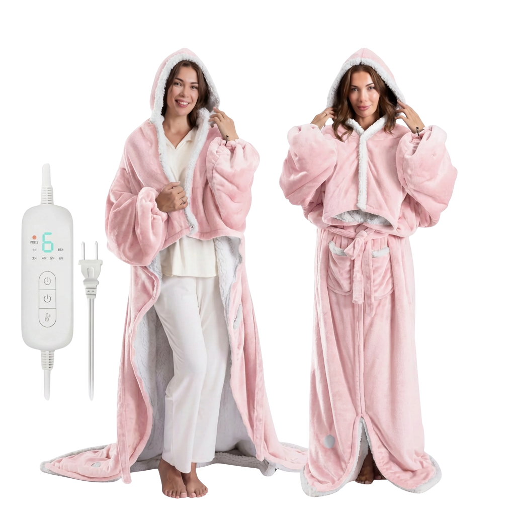 Hugsy features 3 heating zones, each with low, medium, and high settings so you’re always in control. On high, it reaches up to 60°C, giving you that just-out-the-dryer warmth that wraps around your whole body. Most customers find medium (around 45°C) perfect for all-day comfort.