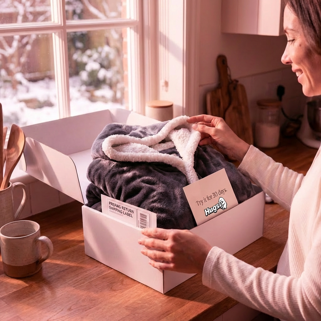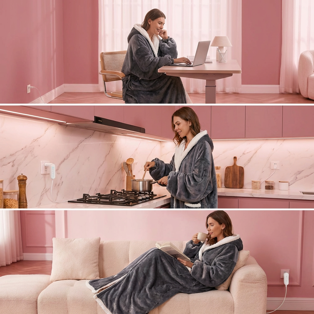 Hugsy isn’t just a blanket, it’s wearable warmth. You move freely while staying heated, and the 3-zone system prevents hot spots or uneven heating. Plus, it’s built to strict safety standards not cheaply made or “lightly tested.” This is premium warmth, designed to last.